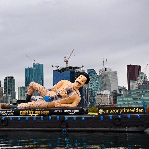 The original Borat premiered at the Toronto International Moviefilm Festival in 2006, where Cohen made a memorable entrance in character astride a wagon pulled by supposed Kazakhstani women.