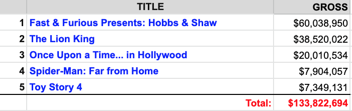 Notice anything? Like how the top movie last year earned more than 200 times its 2020 counterpart?