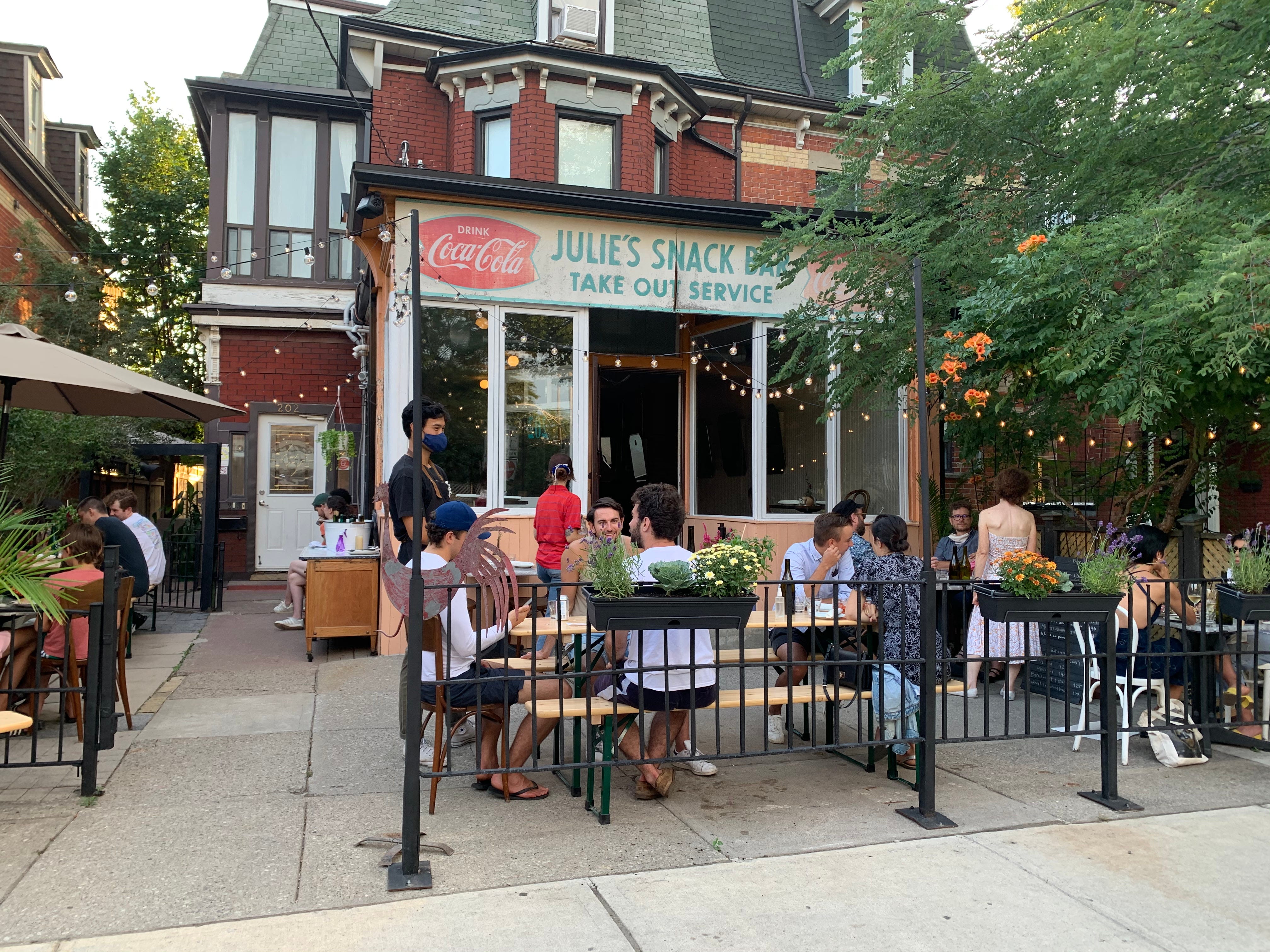 Bernhardt’s has now extended Julie’s original ample patio into a blocked-off portion of Dovercourt Road, thanks to Toronto’s popular (with diners if not drivers) CafeTO initiative.